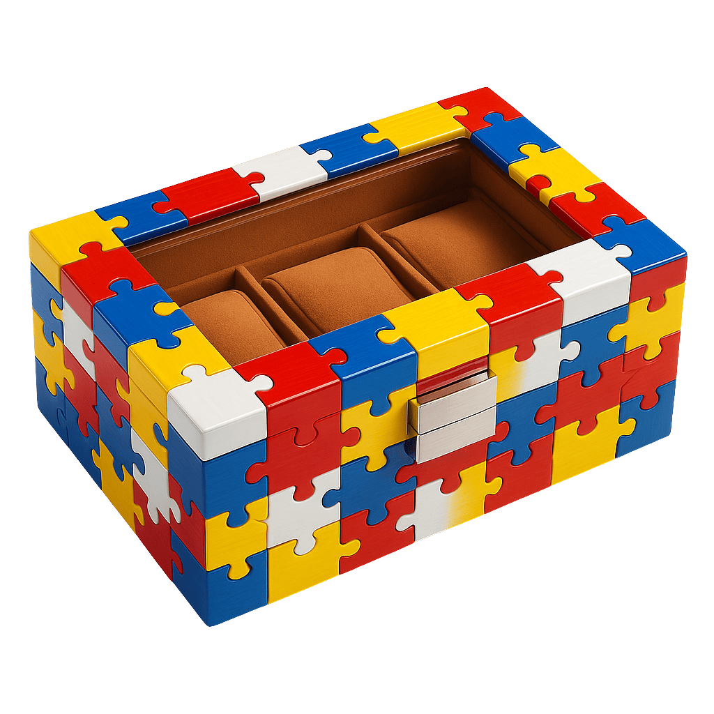 The Missing Pieces Quadcolour is not just a watch case. It is a life rendered in wood and color: that in the harmony of difference, we find completion.