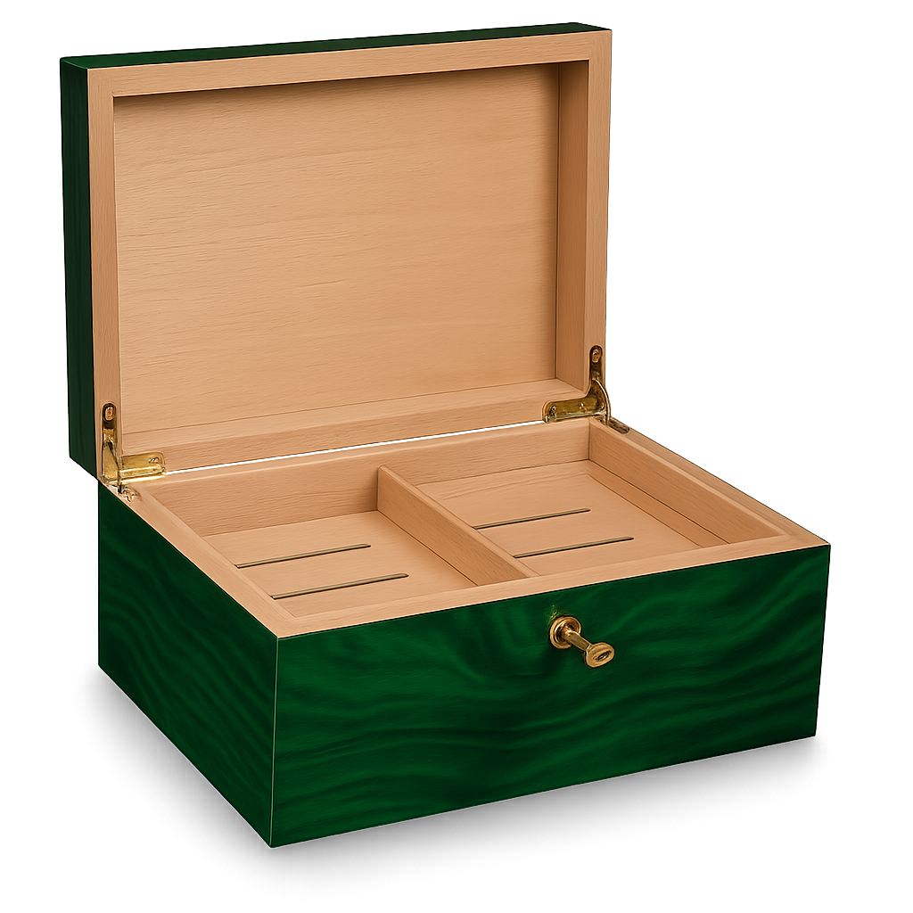 Step into refinement with The Gecko. Luxury humidor base with a striking emerald-green finish.